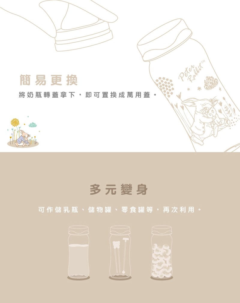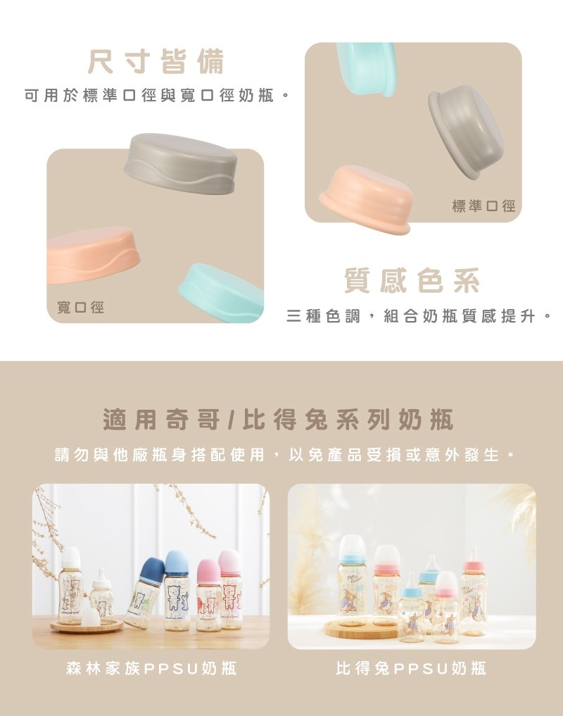 3.搭配奇哥、比得兔標準口徑奶瓶使用。
