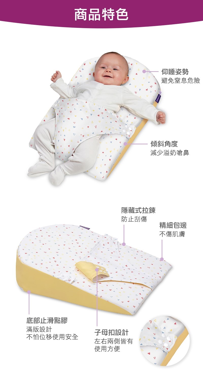 3.傾斜角度有效減輕嬰兒牛奶溢流、腸絞痛及鼻塞等不舒適感。
