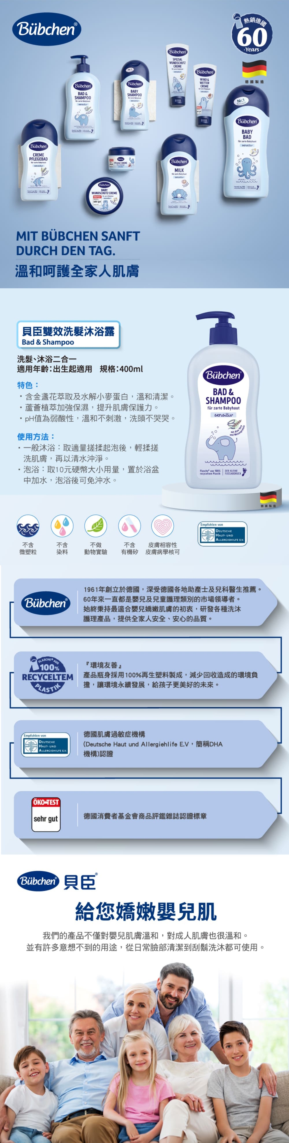 |Bübchen貝臣 德國雙效洗髮沐浴露 400ml|