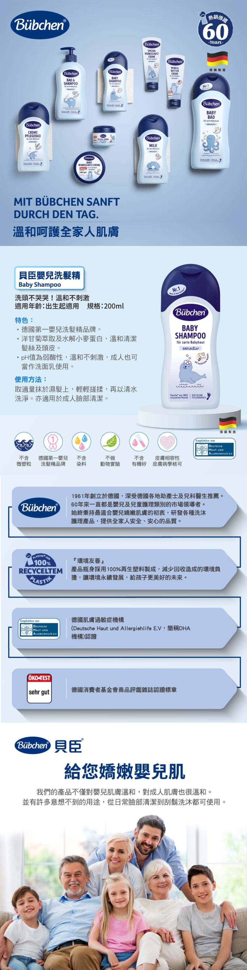 |Bübchen貝臣 德國嬰兒洗髮精 200ml |